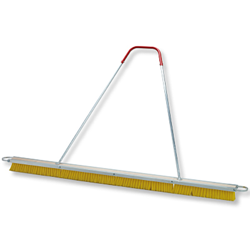 Arbeitsbreite 200 cm, 4 auswechselbare Besen-Elemente in Alu-Profilrahmen verschraubt, an beiden Enden Schutzbügel, damit der Besen beim Abziehen nicht an Netz- und Zaunkanten hängenbleiben kann. Komplett mit Zugbügel und Kunststoffgriff.