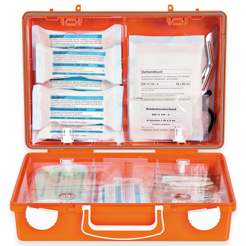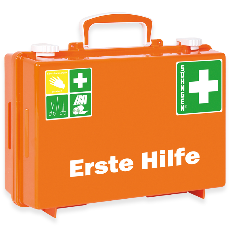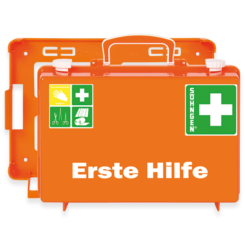 Der Erste-Hilfe-Koffer SN-CD in leuchtendem Orange ist kompakt, funktional und entspricht der Norm DIN 13157. Damit ist er ideal für kleinere Betriebe, Büros, Baustellen sowie für Vereine, Behörden und Schulen geeignet. Dank seiner stabilen Konstruktion und der praktischen Wandhalterung lässt sich der Koffer sowohl stationär an der Wand befestigen als auch mobil mitnehmen. Die durchdachte Innenaufteilung sorgt für eine übersichtliche Organisation der enthaltenen Verbandmaterialien, sodass im Ernstfall alles schnell griffbereit ist.