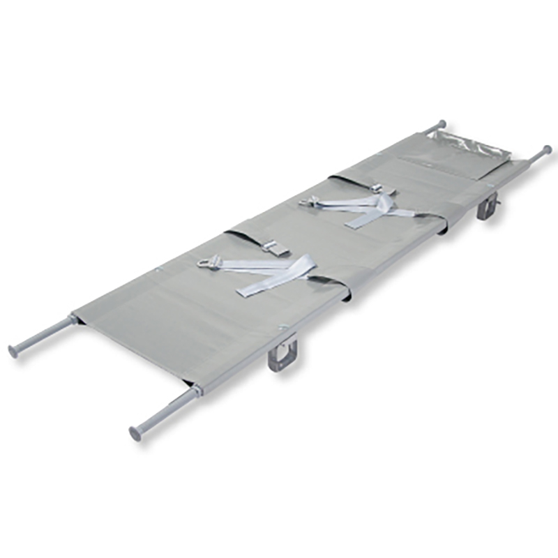 Die Krankentrage ist eine hochwertige, klappbare Transporthilfe, die nach der DIN 13024 gefertigt wurde. Mit ihrem stabilen Aluminiumrahmen und den nahtlosen Vierkantprofilen bietet sie höchste Belastbarkeit und Sicherheit bei der Patientenbeförderung. Ausgestattet mit verriegelbaren Stahlgelenken und einschiebbaren Tragegriffen gewährleistet sie eine einfache Handhabung. Der Tragebezug besteht aus monofilem Polyäthylengewebe, das thermofixiert, atmungsaktiv, pflegeleicht, desinfizierbar und verrottungsbeständig ist. Besonders praktisch sind die Schnellverschlüsse an den Patienten-Sicherungsgurten, die eine schnelle und sichere Fixierung des Patienten ermöglichen. Mit den 4 Gleitfüssen lässt sich die Trage problemlos über den Boden bewegen.