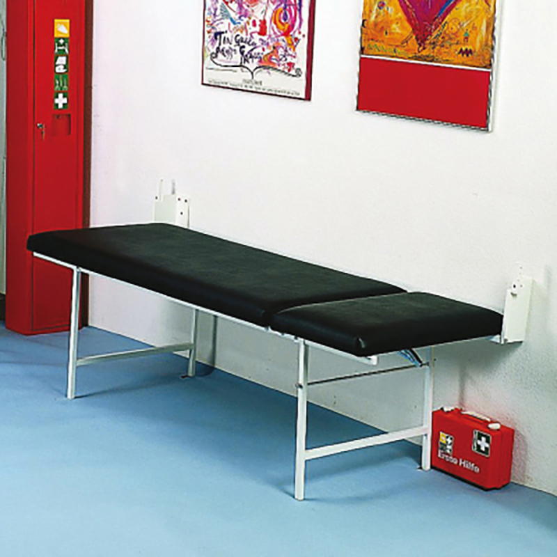 Sanitäts- und Ruheraumliegen werden nicht tagtäglich benutzt, müssen aber gemäß Arbeitsstättenverordnung ständig für den Notfall bereitgehalten werden. Eine platzsparende Lösung bietet jetzt die neue Wandklappliege. Diese Liege ist mit einem unkomplizierten Mechanismus ausgestattet, der es ermöglicht, die Liege platzsparend und gut gesichert gegen die Wand geklappt bereitzuhalten.