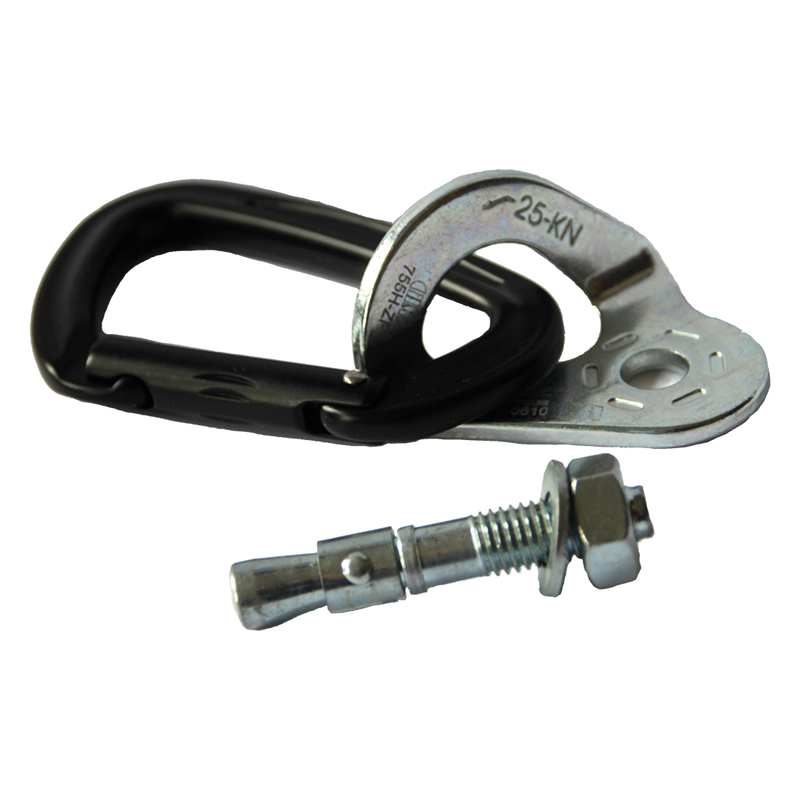 Die Aufhängelasche ist eine stabile Aufhängung mit Einhängering und hat eine Bruchlast von 2500 kg. Die Lasche wird inkl. Karabiner und Dübel für Beton oder Holzbefestigung geliefert