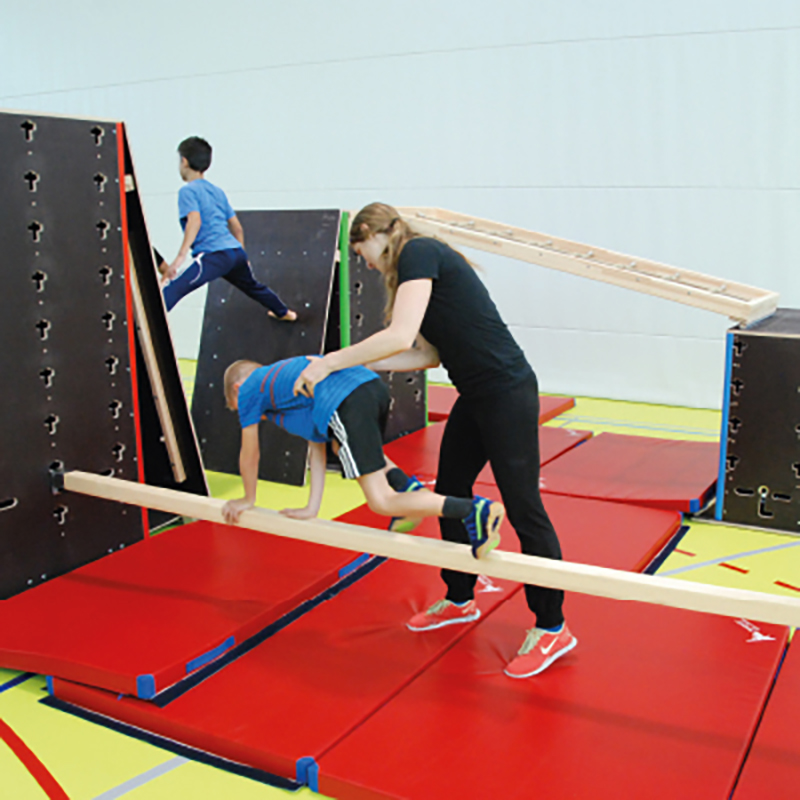 Der Holzbalken in verschiedenen Längen kann zwischen zwei Hauptelementen Cube und Box eingehängt werden. Er ist optimal für Balancetraining geeignet. Zudem können viele natürliche Bewegungen wie Krabbeln, Kriechen oder Stützen ausgeübt werden.