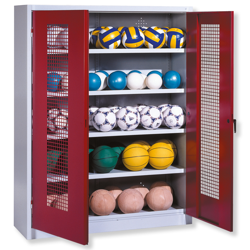 Ballschrank mt Lochblech-Flügeltüren