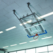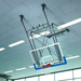 Brett 180 x 105cm Acrylglas auf Stahlrohrrahmen, nach Vorschrift markiert, unten und seitlich mit Kantenschutzpolster. Brett an Stahlrohrgestell mit Stabilisierungsschere rückwärts an Decke hochziehbar. Aufzug mit Elektromotor 230V, mit 2 eingebauten Endschaltern.