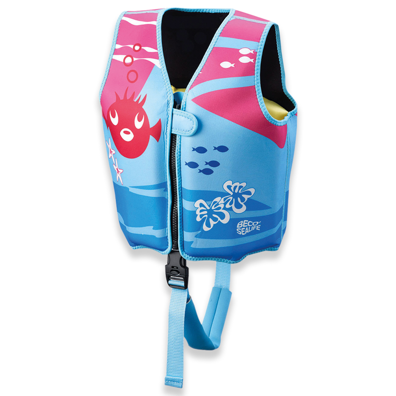 Schwimmweste nach Sicherheitsrichtlinie EN13138 - 1:2014 mit hohem Tragekomfort und maximaler Bewegungsfreiheit. Geeignet für Kleinkinder von 1-3 Jahren und 15-18 kg (Gr. S) und Kinder von 3-6 Jahren und 18-30 kg (Gr. M). Weste aus Neopren mit Reissverschluss und Schnellverschluss für einfaches An- und Ausziehen, variable Auftriebskörper, verstellbarer Beingurt. Schwimmhilfe - keine Lebensrettungsweste.