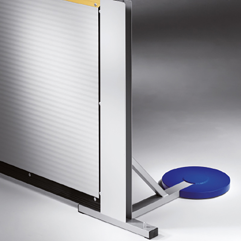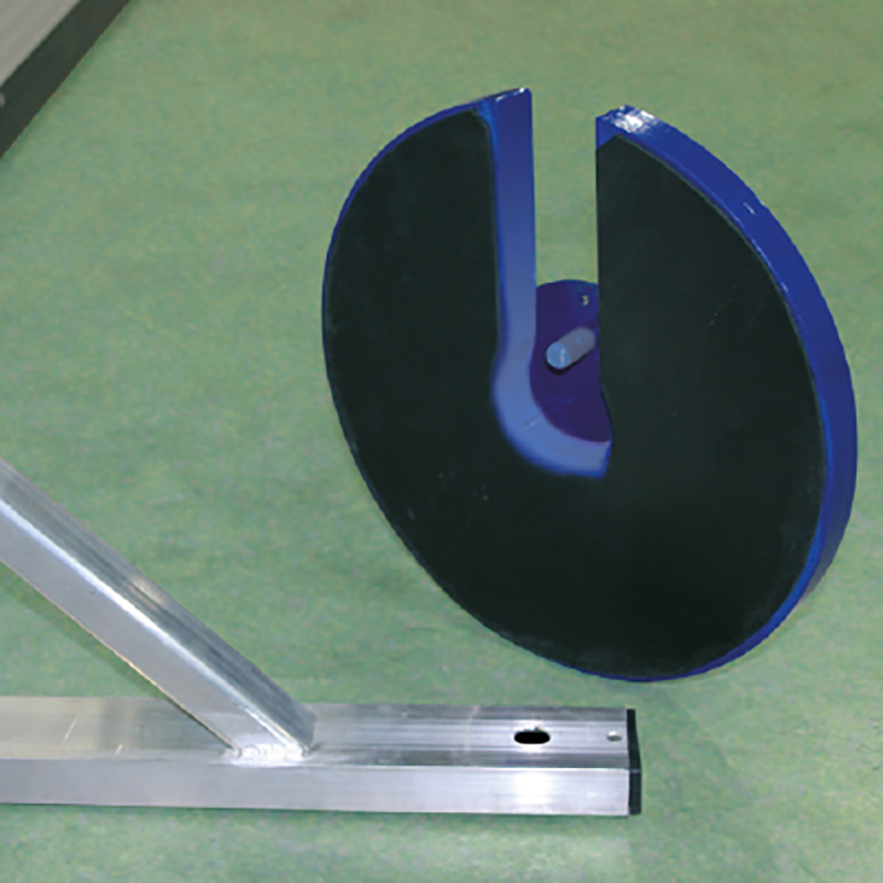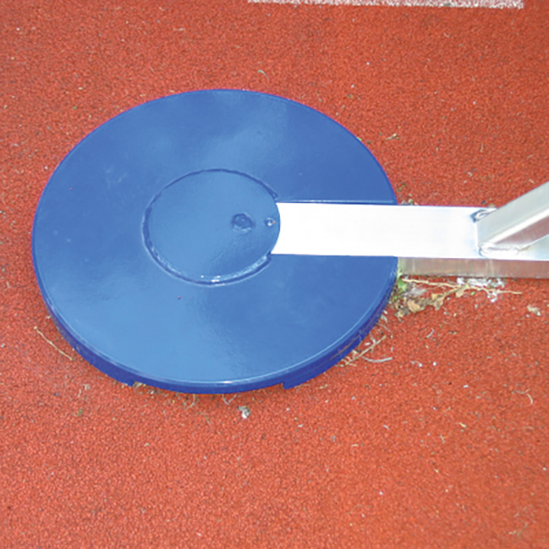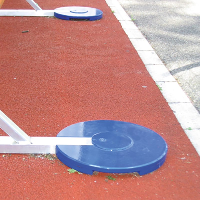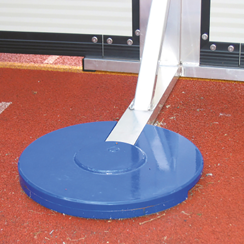 aus Stahl, genau an den Ständerfuss angepasst, mit Fixierungszapfen, Gummiunterlage zur Schonung des Bodens bei Verwendung in der Halle.