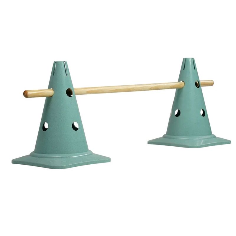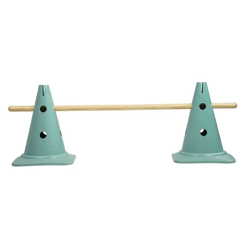 Ob für Kinderturnen, Koordinationstraining, Schul- oder Vereinssport – die Kombination aus Lochkegeln und Turnstab ermöglicht die schnelle und einfache Gestaltung von Hürden in verschiedenen Höhen. Einfach den Holzstab seitlich in die Lochkegel stecken, und schon ist ein Parcours- oder Spielfeld-Element fertig.