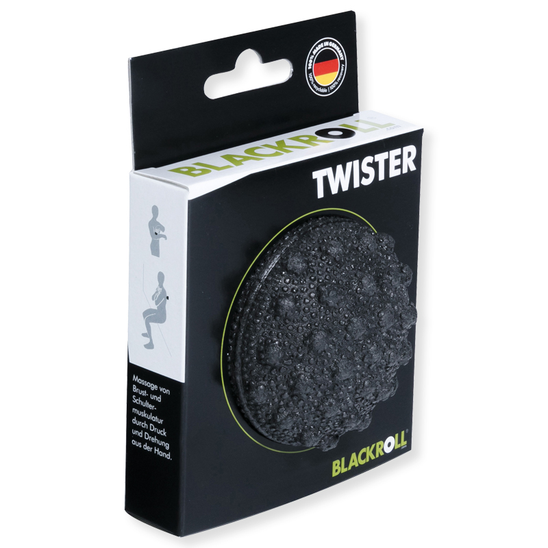 Das neue Trainings- und Faszientool von Blackroll kann zum Beispiel zur Massage der Schulter- und Brustmuskulatur, der Unterarme und der Fusssohle eingesetzt werden. Der Blackroll Twister ist mit einer gewölbten und genoppten Oberfläche ausgestattet. Durch die Wölbung und die Noppen, können Triggerpunkte und Triggerbänder punktuell stimuliert werden. Die Kombination von Druck und Dehnung ist dabei besonders effektiv.