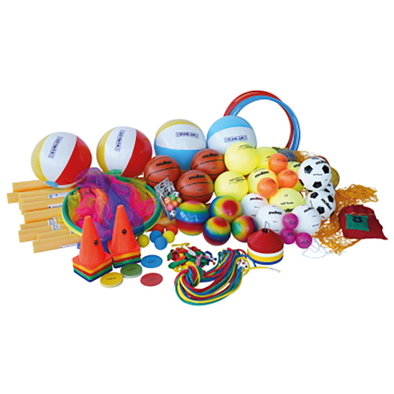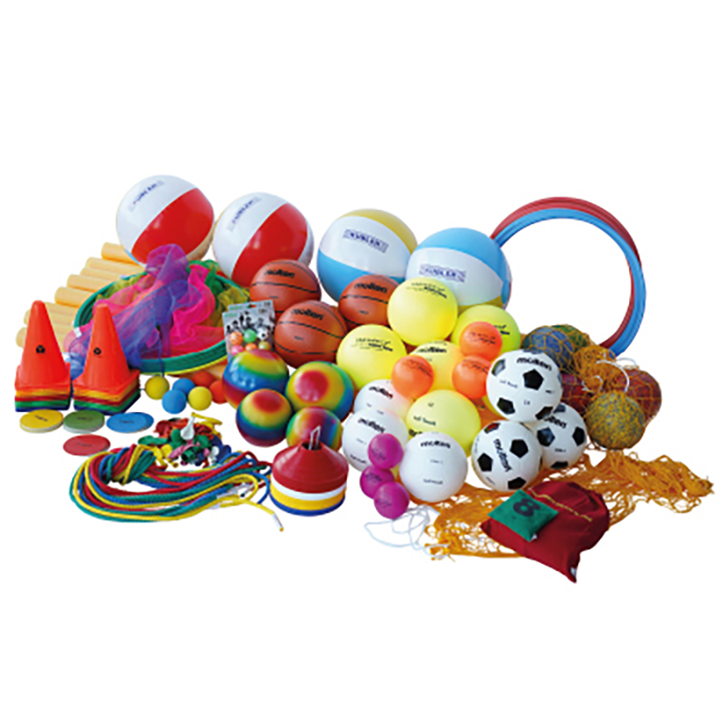 Mit dieser vielfältigen Auswahl an Bällen und zusätzlichem Equipment lassen sich Kinder optimal an zahlreiche Ballsportarten und Bewegungskonzepte heranführen. Dabei sind die Eigenschaften der Bälle genauso bunt wie das Set selbst. Motorische und kognitive Fähigkeiten werden durch die verschiedenen Sprungeigenschaften, Materialien und Farben bestmöglich unterstützt. Vom trägen Luftballon bis zum spritzigen Basketball ist alles dabei. Ausserdem wird das grosse Ballschule-Set durch Markierkegel, Springseile und Gymnastikreifen ergänzt, wodurch noch mehr Spielformen durchführbar sind.