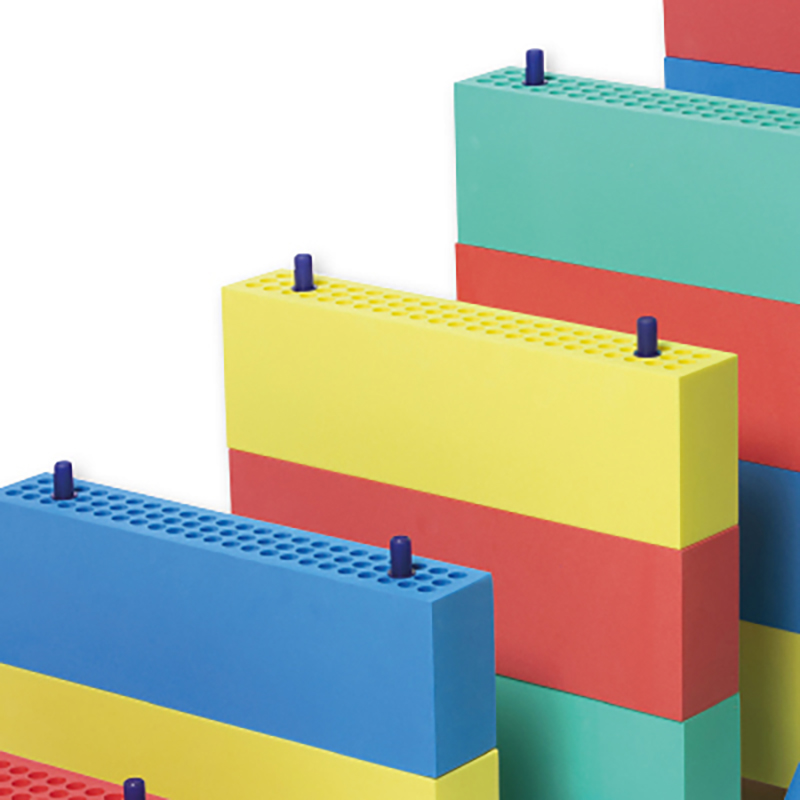 Die ideale Steckverbindung um die vielfach bewährten Schaumstoffblöcke miteinander zu verbinden. So entstehen immer neue Einsatzmöglichkeiten in Spiel, Sport und Freizeit.