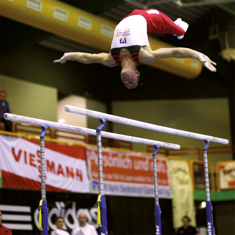 Äusserst stabile Stahlkonstruktion. Aufstandflächen mit nichtfärbenden Kunststoffpuffer. Die Barrensäulen verfügen über eine Höhenverstellung in 50 mm Schritten von 1450 bis 2050 mm mit speziell bedienfreundlicher und äusserst sicherer Klemmvorrichtung.