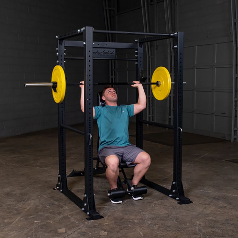 Das Body-Solid® GPR-400 ist ein hochbelastbares Power-Rack, das für kommerzielle Krafttrainingseinrichtungen konzipiert wurde. Dank seiner Gesamthöhe von nur 201cm kann das Power-Rack im Gegensatz zu herkömmlichen Power-Racks auch in Garagen, in Kellern oder Trainingsräumen mit niedrigen Deckenhöhen genutzt werden. Das breite, begehbare Design bietet dabei maximale Bewegungsfreiheit, so dass eine Vielzahl von Übungen komfortabel durchgeführt werden können, einschließlich Kniebeugen, Ausfallschritten, Rack-Pulls und Kreuzheben. Eine integrierte Klimmzugstange mit einem Griffdurchmesser von 3 2mm erweitert das Übungsspektrum des GPR-400, sodass Klimmzüge, Beinheben und schräge Drehungen durchgeführt werden können. Die 7,5 x 7,5cm, 4-seitig geschweißte Stahlrahmenkonstruktion sorgt dabei für die nötige Stabilität, um auch der Intensität von schwerem Powerlifting und häufigem Gruppentraining stand zu halten.