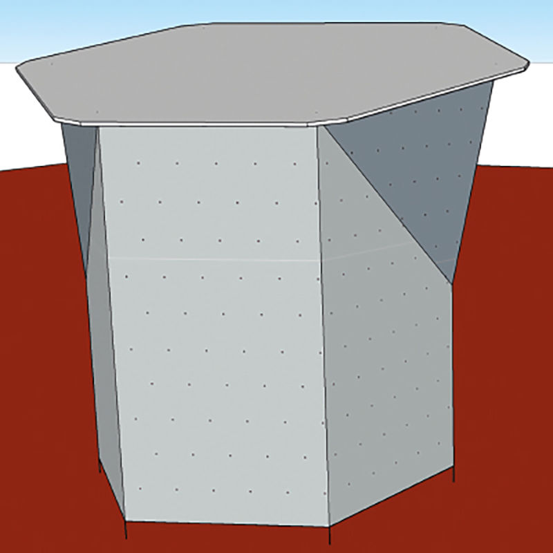- Oberfläche: Multiplex-Platten (21 mm dick), witterungsbeständig, gerastert, komplett beschichtet in Kletterhallenqualität