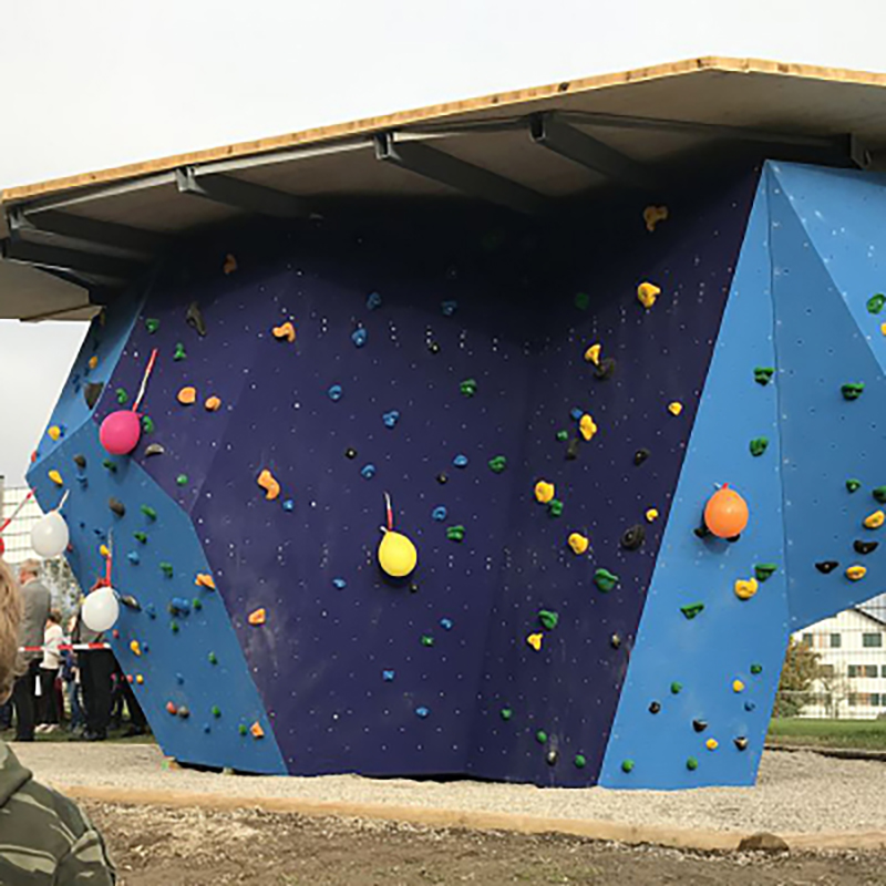 - Oberfläche: Multiplex-Platten (21 mm dick), witterungsbeständig, gerastert, komplett beschichtet in Kletterhallenqualität