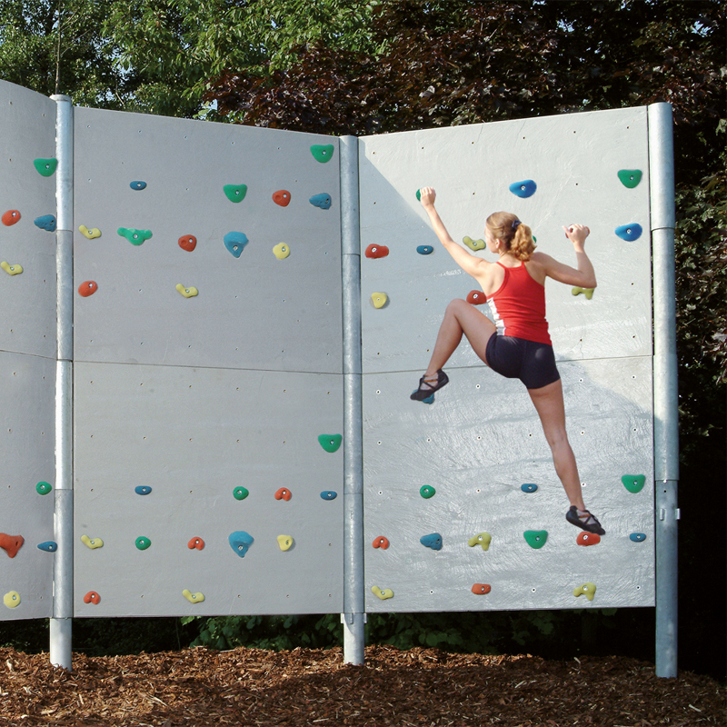 Boulderwände sorgen für ein Höchstmass an Kletterspass und Sicherheit. Die Wände aus Polymerbeton sind auf lange Sicht verschleissfrei und wetterbeständig. Diese Art Kletterwände sind die optimalen Spielplatzgeräte, da wegen der geringen Absprunghöhen keine Aufsicht oder spezielle Sicherungsgeräte gebraucht werden. Es muss lediglich für einen geeigneten Fallschutz gesorgt werden. Die Boulderwände können jederzeit beliebig erweitert werden. Die Kletterwände können in gerader Flucht oder in abgewinkelter Form aufgestellt werden - je nach vorhandener Fläche und Kundenwunsch. Je grösser die Kletterwand desto mehr Kinder können gleichzeitig klettern!