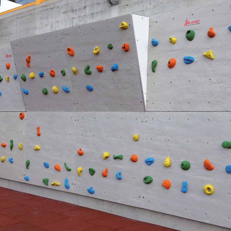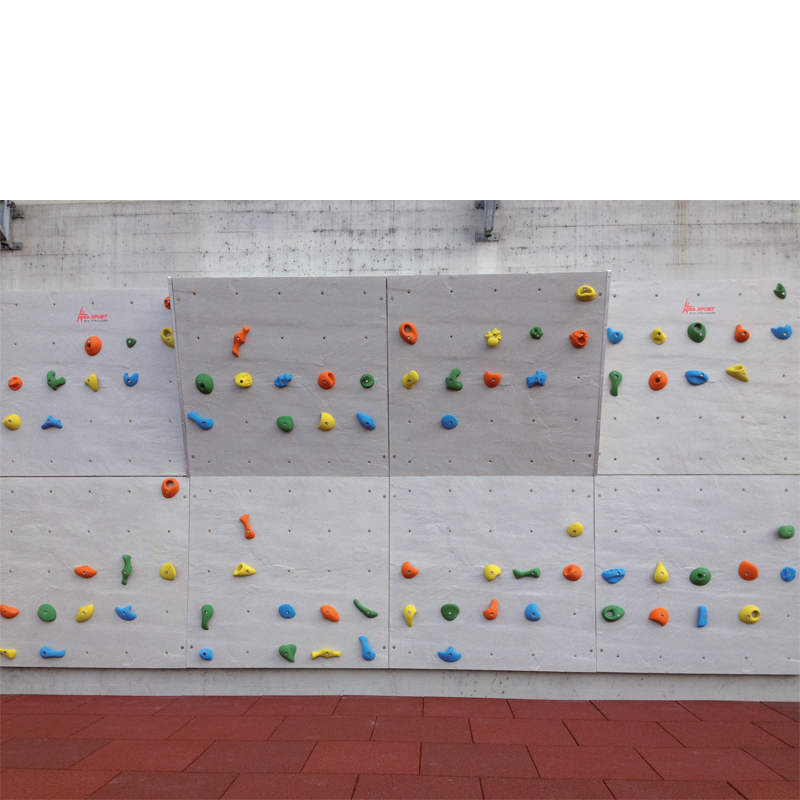 Klettergriffe aus Kunstharz mit Quarzsandoberfläche können jederzeit hinzugefügt werden.