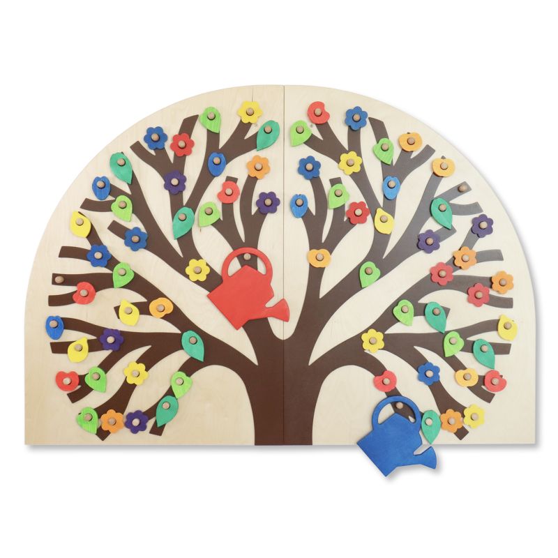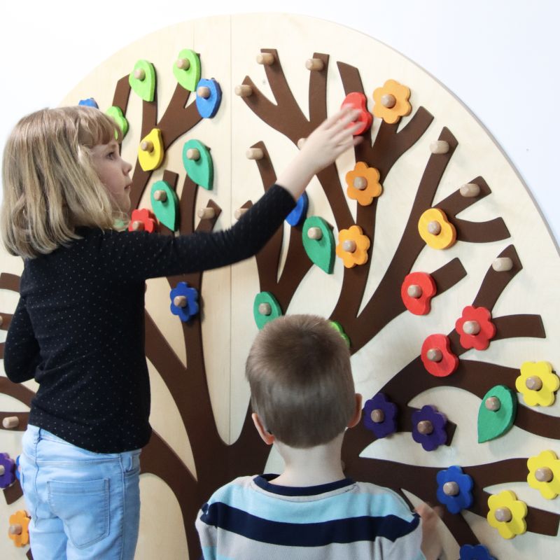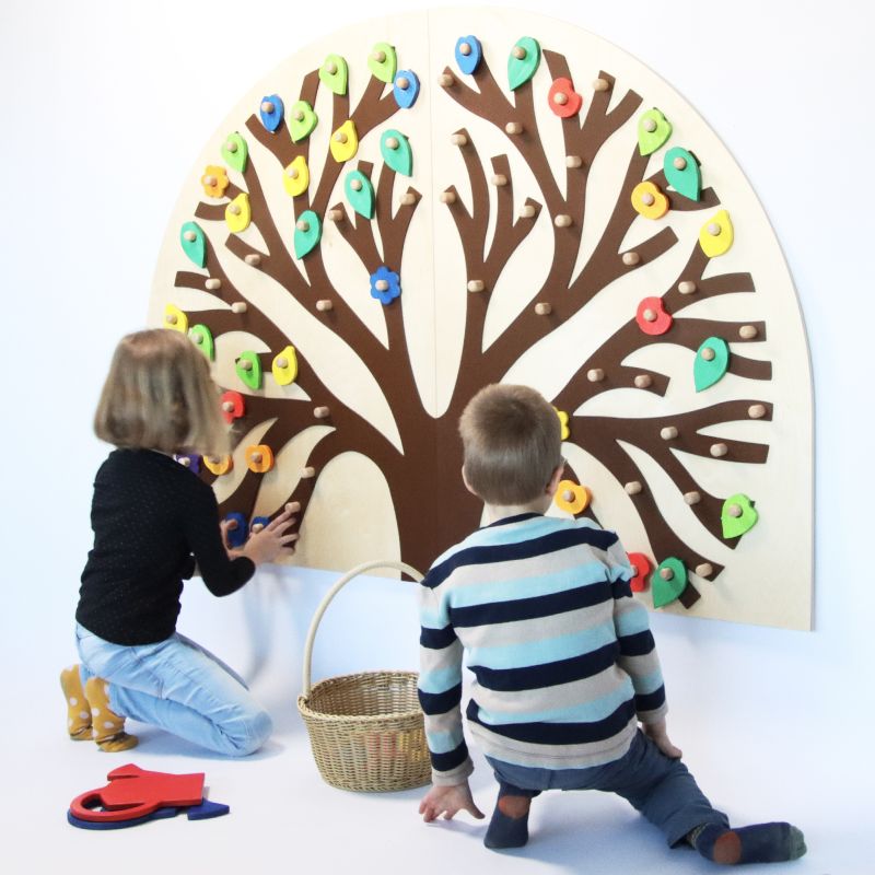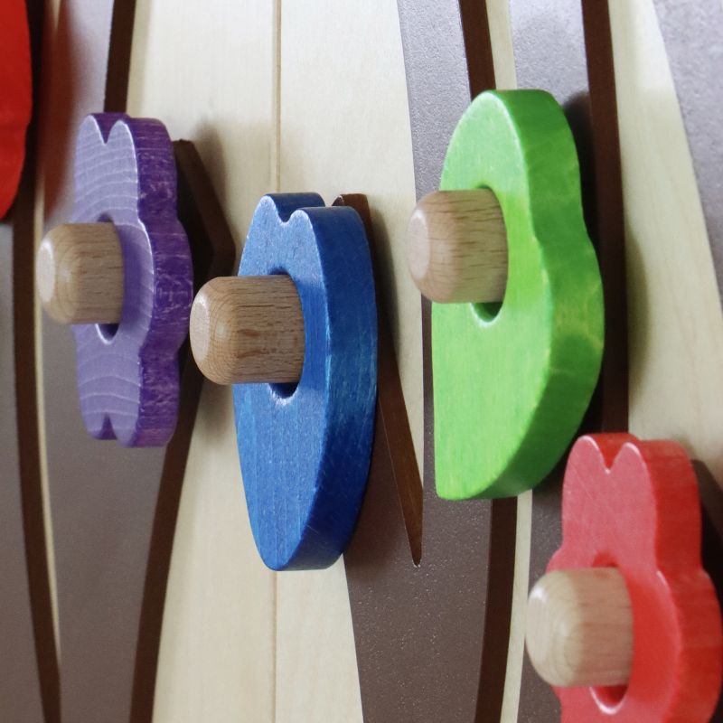 Im 3. Lebensjahr entwickeln Kinder grosses Interesse am Stecken. Mit farbigen Blättern, Früchten und Blüten wird beim fantasievollen Gestalten Kreativität geweckt. Auch das Spielen nach Regeln ist möglich, indem die Erzieherin eine bestimmte Gestaltung anregt, z.B. mit Früchten und Blättern oder mit Blüten und Blättern. Alle Elemente zum Stecken können wieder gepflückt oder geändert werden. Sie werden im Körbchen gesammelt. Mit kleinen Giesskannen kann der Busch sogar „gegossen“ werden.