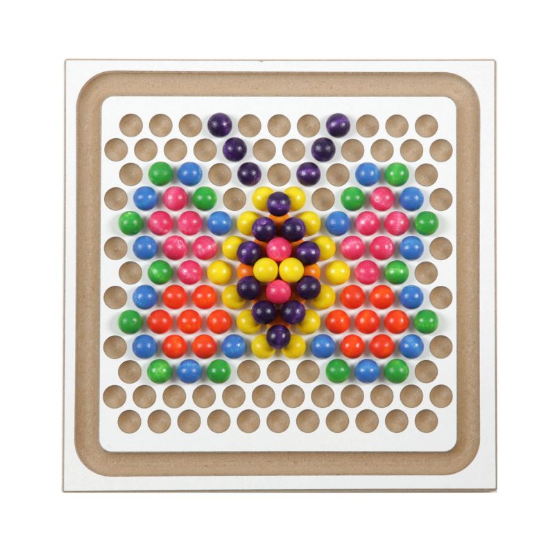 Eine Seite zeigt sauber in Reihen angeordnete Kugelmulden – ideal zum Legen von klaren Mustern, Farbverläufen oder logischen Reihenfolgen. Die andere Seite überrascht mit versetzt angeordneten Mulden, die sich hervorragend zum dreidimensionalen Bauen und intuitiven Legen eignen.
