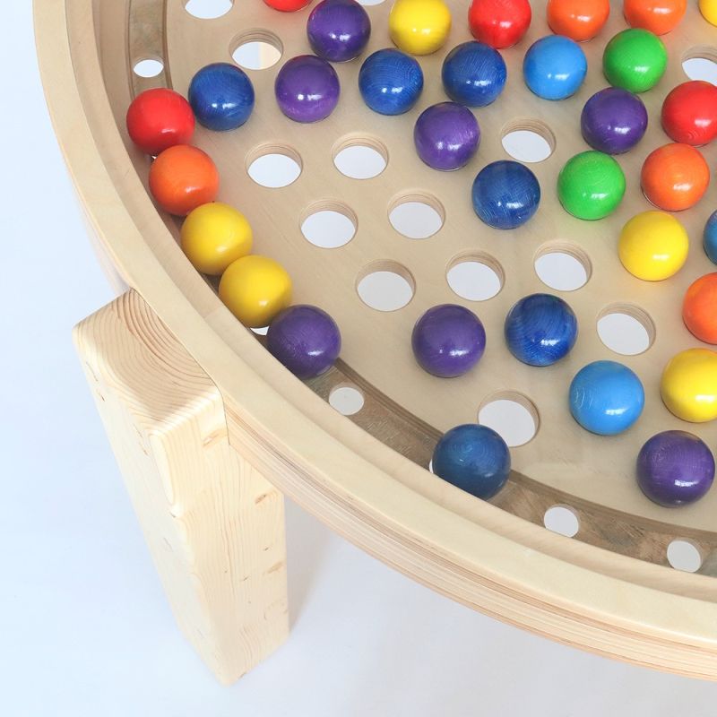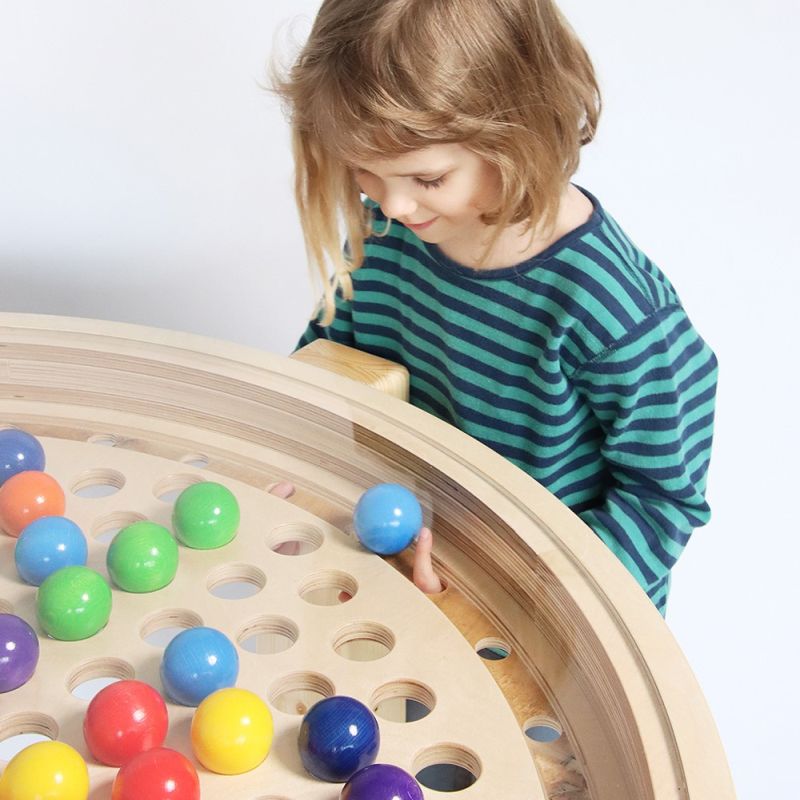 Das Wichtigste am Spiel ist die ständige Koordination zwischen Auge und Hand. Bei allen Aktivitäten werden die Finger bewegt und die Fingerfertigkeit geübt. Die gut aufeinander abgestimmten Farben der Holzkugeln haben einen hohen Aufforderungscharakter, der fast jede Altersgruppe anspricht und beim Spielen viel Spass vermittelt.