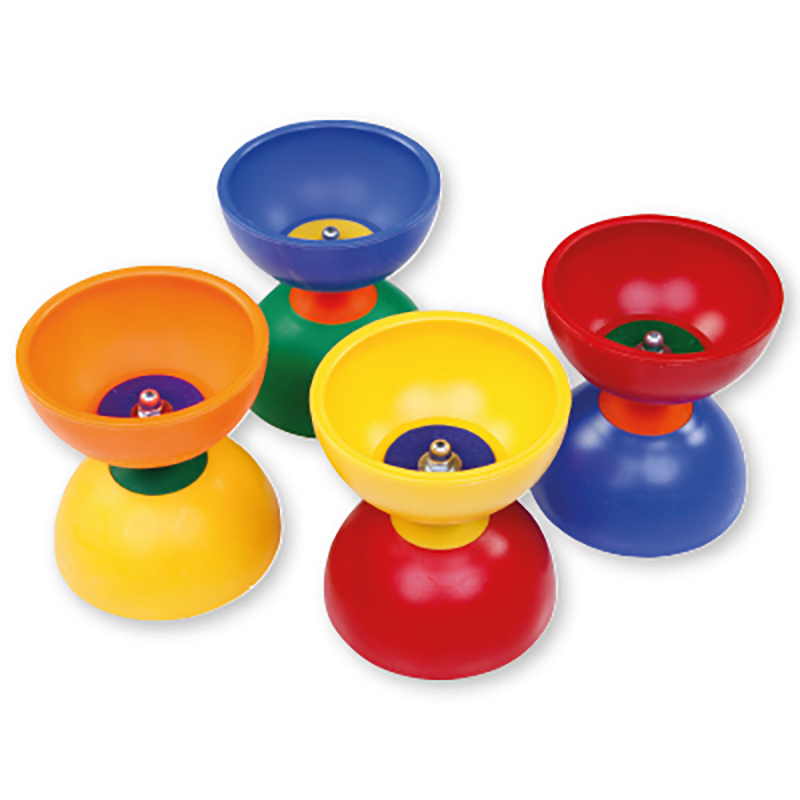Kunststoff-Diabolo Ø 11,5 cm, ca. 180 g in leuchtend-buntem Mehrfarb-Design, farbig sortiert.