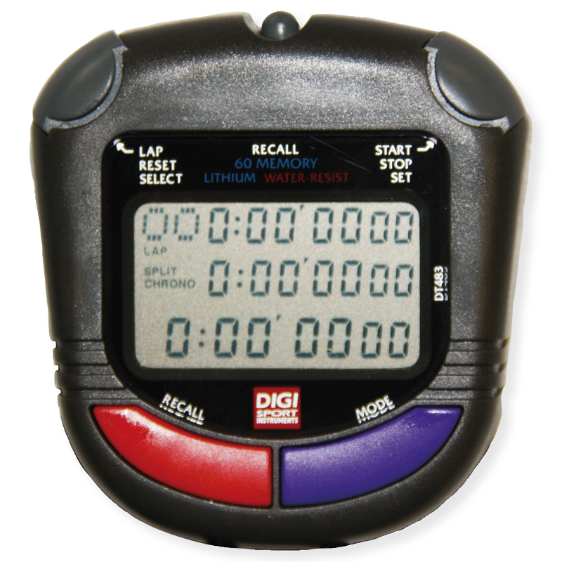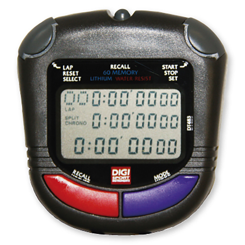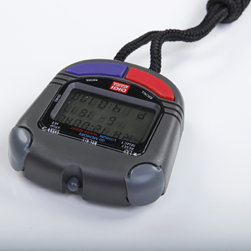 Die Stoppuhr für den ambitionierten Trainer. Drei-Zeilen-Display, 24h-Zeitanzeige mit Datum und Alarm, Stoppfunktion 9 h, 59 min. & 59.99 sec, Pacer (10-320 S/min), Speicher für 60 Runden- und Zwischenzeiten, Timer (9:59:59) mit 30 sec. Time-out Funktion, handelsübliche 3 V Lithiumbatterie CR2032.
