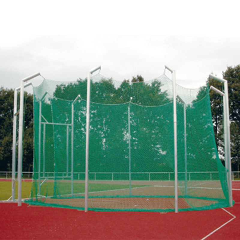 Das Wurfschutzgitter dient als Befestigungsmöglichkeit für ein Netz und schützt so die Zuschauer, die Wettkampfrichter und die Athleten beim Diskuswurf bzw. Hammerwurf. Es ist nach oben und zur Wurffläche hin geöffnet und verhindert, dass ein Wurf zur Seite oder nach hinten erfolgt, der die Beteiligten gefährdet. Über Umlenkrollen kann ein Schutznetz gespannt und am Boden mit Sandsäcken beschwert werden. 10 Standardbodenhülsen befestigen die Konstruktion am Boden und über 2 Schwenkflügel mit Laufrollen und Feststellern kann die Öffnung variiert werden.