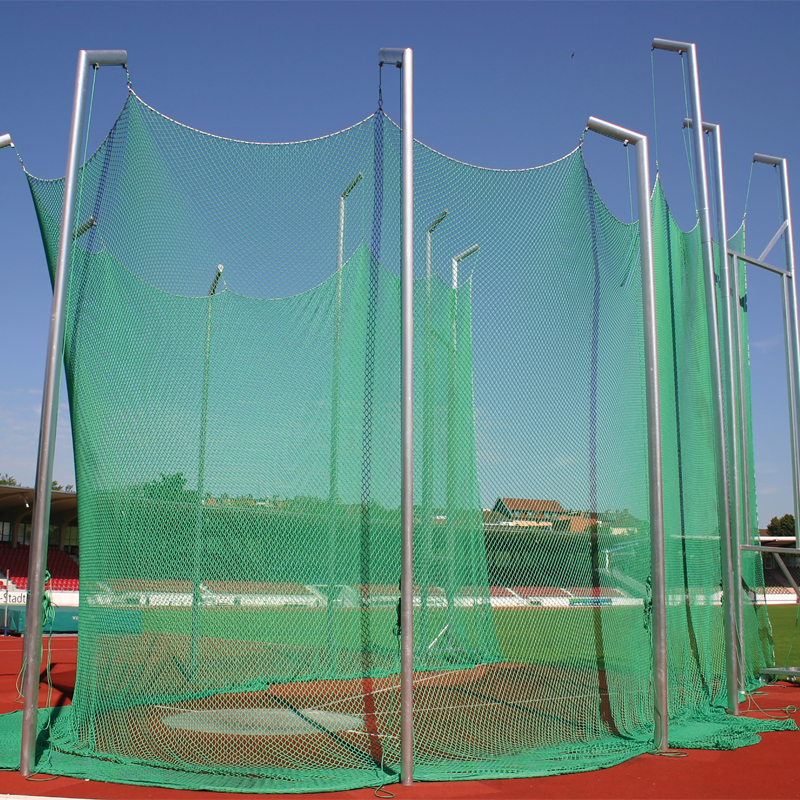 Das Diskus Schutzgitter dient dem Schutz der Athleten, Offiziellen und Zuschauern beim Diskuswurf. Das Gitter kann über Bodenhülsen im Boden verankert werden.