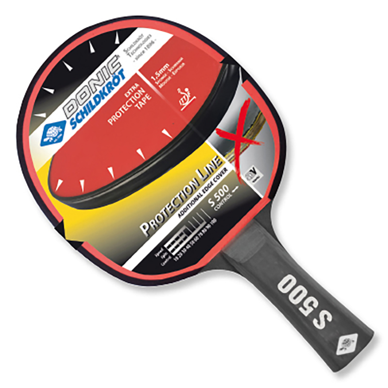 Die Donic-Schildkröt Tischtennisschläger PROTECTION LINE Serie ist eine spezielle Schläger-Reihe mit verstärktem, überlappendem Rand. Das Kantenband überlappt auf den Belag. Somit verhindert das extra Protection Tape ein ausfransen des Belags und Schwamms und macht den Schläger so langlebiger. Konkaver Griff, 1,5 mm Schwamm, ITTF zugelassener Belag. 5V Vario Holz. Speed: 60, Spin: 50, Control: 90. Mit dem innovativen Protection Tape.