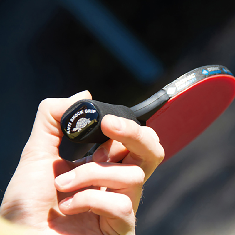 Der „Sensation ASG“ von Donic-Schildkröt ist ein Schläger in sehr hochwertiger Verarbeitung, der mit dem rutschsicheren „Anti Shock Grip“ (ASG) ausgestattet ist. Der weiche und sehr haltbare Schaumstoffüberzug saugt den Schweiss auf und sorgt für exzellente Griffsicherheit sowie mehr Komfort. Die Schläger der „Sensation Line“ sind optimal geeignet für ambitionierte Hobby- & Freizeitspieler, ebenso als Privatanschaffung für den Schulgebrauch. Das Modell Sensation 700 ASG punktet mit seinem griffigen Schildkröt Avantgarde-Belag, mit dem sich die verschiedenen Spieltechniken gut auf den Ball übertragen lassen. Der zwischen Belag und Holz befindliche 1,8 mm starke Schwamm generiert eine gute Dosis an Power, schnellere Ballgeschwindigkeiten bei gleichem Krafteinsatz sind der Vorteil gegenüber einem dünneren und somit preiswerter herstellbaren Schwamm.
