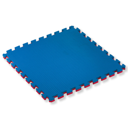 Die Puzzlematte ist ideal für Karate, Taekwondo, Kickboxing und viele andere Kampfsportarten und ist in zwei unterschiedlichen Härtegraden verfügbar. Die Double Competition ist als Wendematte beidseitig verwendbar und wie eine Judomatte mit einem Reisstrohmuster versehen. Mit der Verzahnung ringsum lassen sich mit den Sportmatten beliebige Flächen individuell gestalten. Selbst bei loser Verlegung ist stets ein fester Zusammenhalt gewährleistet. Jede Matte wird mit 4 Randstücken geliefert. So ist immer ein sauberer Abschluss der Kampfsportfläche gewährleistet. Das Plattenmass der Competition Puzzlematten beträgt 100 x 100 x 2 cm, das Gewicht einer Matte ca. 2 kg. Ausserdem ist die Matte in zwei verschiedenen Farbkombination erhältlich. Nach DIN EN1177 sind die Steckmatten mit dem Härtegrad 50-55° als Fallschutzmatte bis zu einer Fallhöhe von 90 cm zertifiziert. Beide sind nach dem Brandverhalten klassifiziert nach DIN EN 13501-1, Klasse E.
