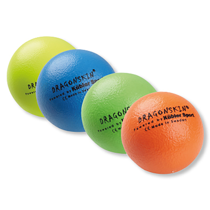 Dieses Set bestehend aus entweder vier oder fünf Dragonskin® Softbällen in verschiedenen Grössen und Farben ist vor allem in Schulen und Kindergärten besonders beliebt. Dafür gibt es mehrere Gründe. Zum einen ist die typische “Dragonskin“-PU Beschichtung abwaschbar und desinfizierbar und damit besonders hygienisch. Falls mal Schweiss von Fitness-, Pass- oder Schussübungen auf den Ball gelangt, kann er schnell und leicht gesäubert werden, ohne dass Rückstände auf dem Ball zurückbleiben. Ausserdem sind die Softbälle sehr weich aber dennoch gut springend, weshalb sie auch gerne als Methodikbälle für diverse Sportarten zum Einsatz kommen. Der Ball lässt sich sehr angenehm werfen und fangen und nimmt Kindern schnell die Angst vor Ballsportarten. Zusätzlich sind die Neon-Farben ansprechend und haben einen hohen Aufforderungscharakter. Wird der Ball gequetscht oder zerknüllt nimmt er dennoch schnell wieder seine ursprüngliche Form an.