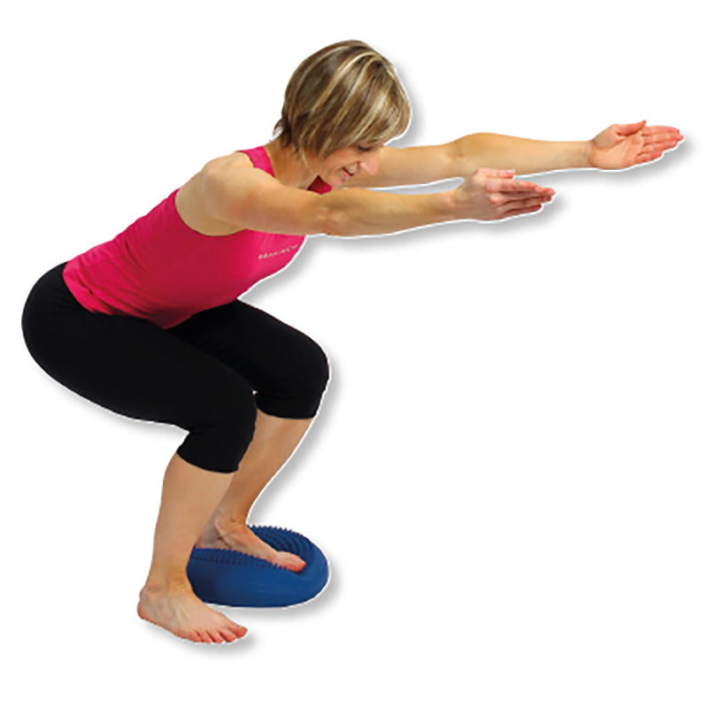 Das Sitzballkissen ist auch für aktives und bewegtes Sitzen geeignet. Die luftgefüllte Unterlage fordert ständige Ausgleichsbewegungen und stärkt dabei tiefer liegende Rumpfmuskulatur, Gleichgewichtsinn und fördert eine aufrechte Körperhaltung.