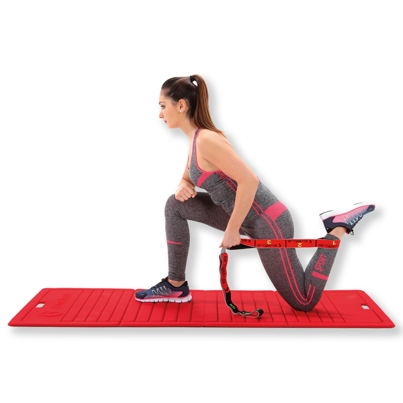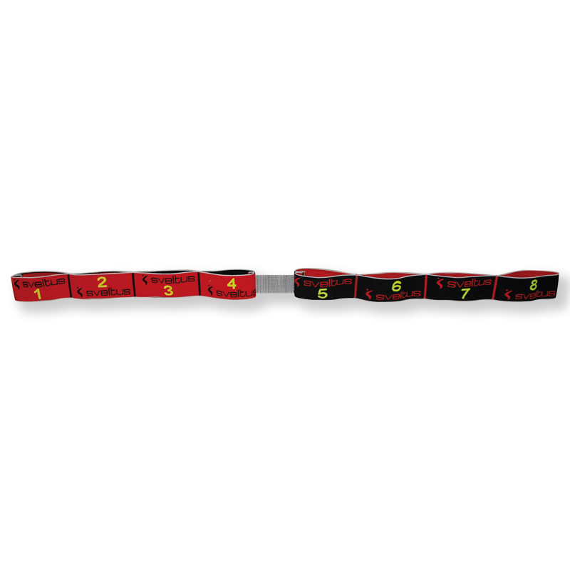 Kombinationsband, das aus 3 Bändern mit verschiedenen Widerstandsstärken besteht. Durch die 8 Schlaufen und 3 verschiedenen Stärken des Bandes lässt sich die Trainingsbelastung individuell anpassen, egal ob bei Stabilisations- oder Kräftigungsübungen.