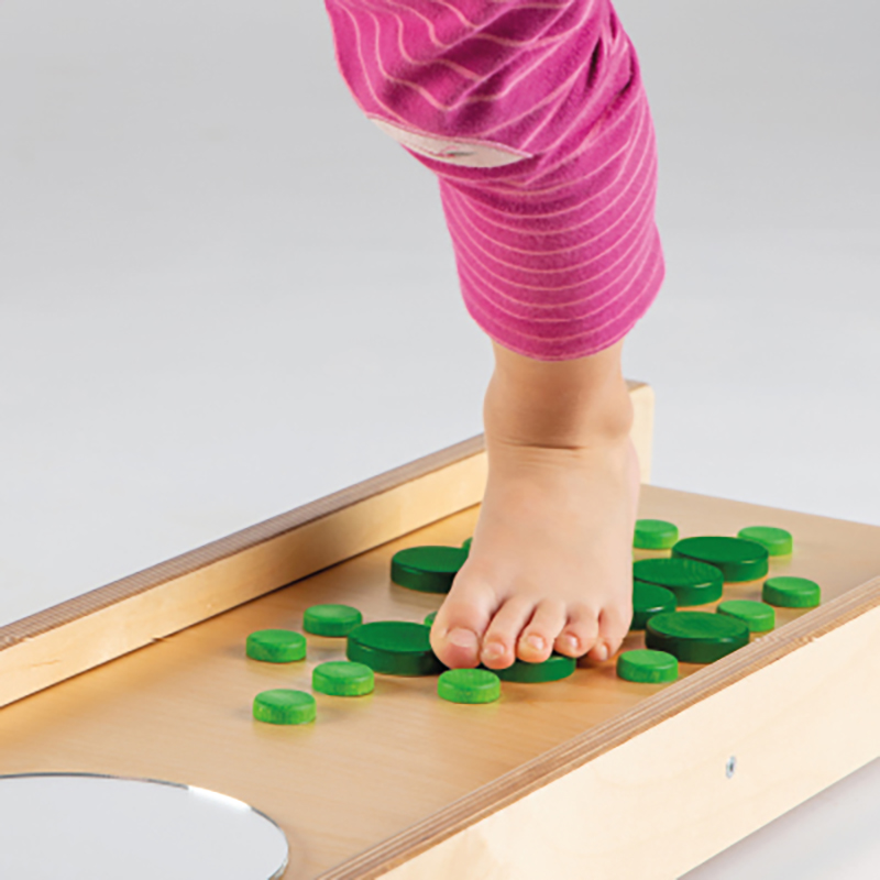 Endlich wieder barfuss laufen - wie am Strand! So soll sich das Brett mit den unterschiedlichen Materialien anfühlen und Füsse und Fusssohlen sensibilisieren. Das Brett dient zur Entwicklung der Fusssensorik.