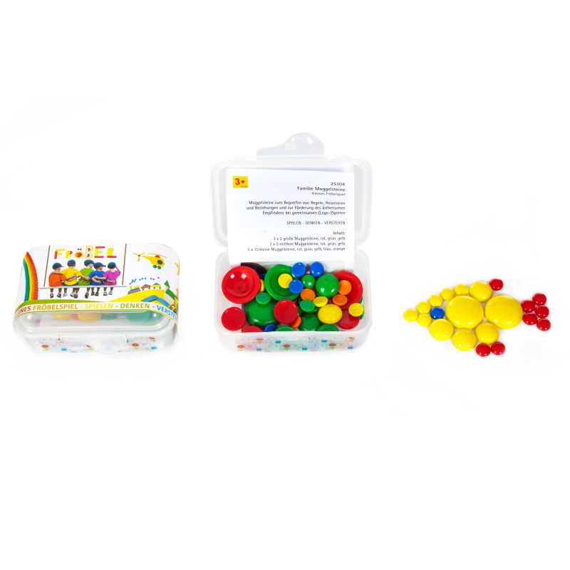 71 Muggelsteine zum Begreifen von Regeln, Relationen und Beziehungen und zur Förderung des ästhetischen Empfindens bei gemeinsamen (Lege-) Spielen.