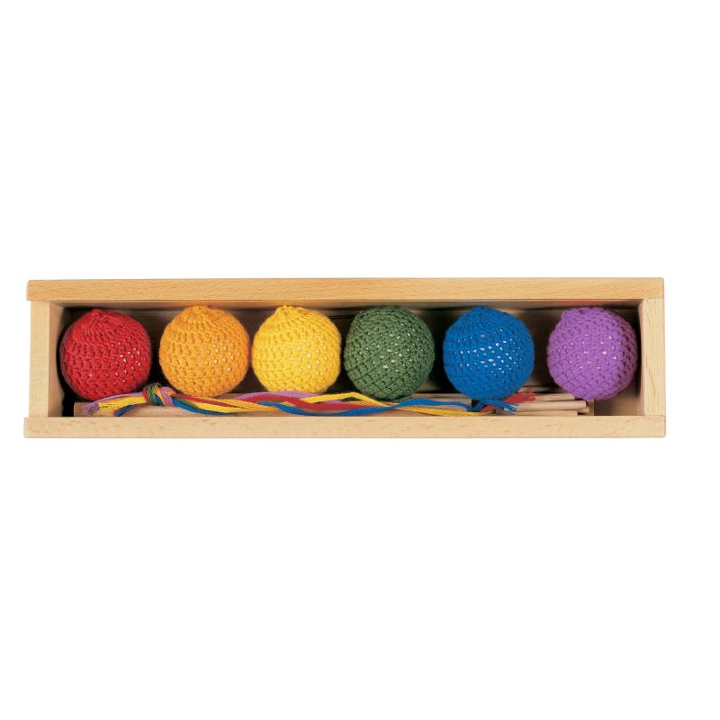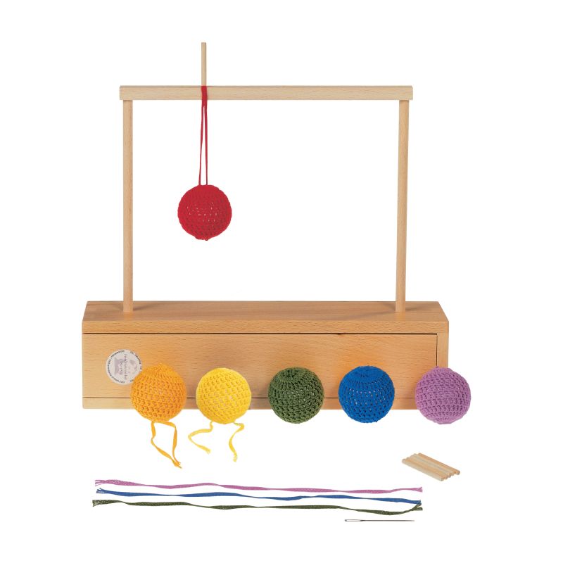 Der Ball hat noch heute in jedem Spielalter grosse Bedeutung (auch im Erwachsenenalter). Bei Fröbel war der Ball als erstes Spielzeug des Kindes die erste Gabe. Der Ball war weich gestopft und in den Farben rot, orange, gelb, grün, blau und violett angefertigt.