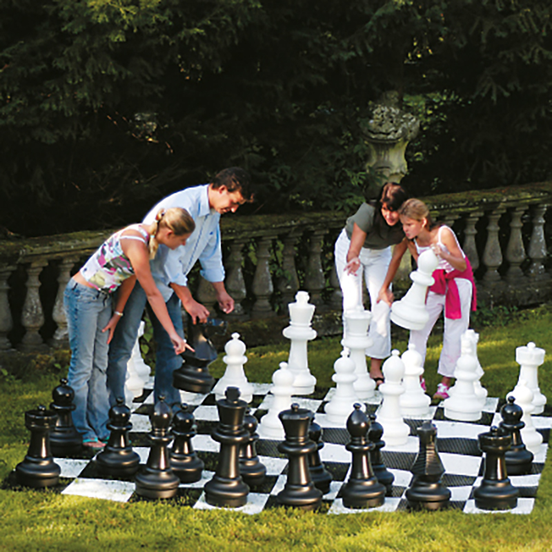 Absolut wetterfester Freiland-Schachfiguren-Satz von Rolly Toys für entspannende Stunden im Park oder überall dort wo sich genügend Platz und ausreichend Ruhe für das Spiel unter freiem Himmel findet. Die Dame-Figuren aus hochwertigen robustem Kunststoff sind nahezu unzerstörbar und deshalb für Einrichtungen wie Freizeit- und Hotelparks, Kur- und Sportanlagen, Schwimmbäder, Bildungsstätten, Pausenhöfe, Jugendherbergen, Altenheime etc. besonders geeignet. Sie sind immer eine attraktive, Zuschauer begeisternde Anschaffung.