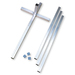 Die freistehenden Bodenhülsen bestehen aus einem 5-teiligen Set mit einem Hülsenkreuz sowie 4 Hohlprofil-Auslegern (3 Stk. 250 cm und 1 Stk. 100 cm). Diese müssen mit Sand befüllt und bedeckt werden. Die breite Standfläche und das Gewicht des Sandes sorgen für absolute Standsicherheit.