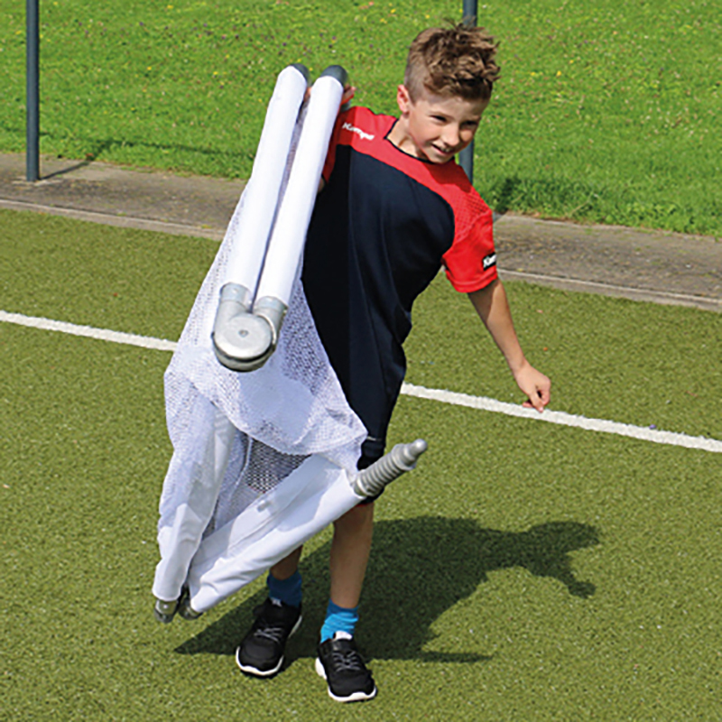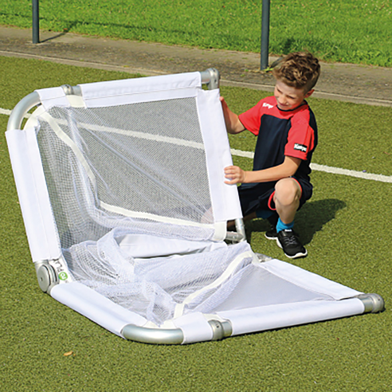 Das faltbare Mini-Fussballtor von Fun2Play® ist der ideale Begleiter für Training, Sport oder Freizeit und ist in drei Torgrössen erhältlich. Das Mini-Tor besticht durch sein innovatives System: Es ist durch ein Aluminium Gelenk in der Mitte der Latte klappbar. Das gewählte Material macht das Tor besonders robust. Ausserdem sind die Netzbügel einklappbar wodurch das Tor transportabel ist. Durch sein leichtes Gewicht können auch Kinder und Jugendliche das Tor ganz bequem tragen und es selbstständig auf- und abbauen. Dadurch ist es für die neuen Spielform FUNiño, welche im Jugendbereich bereits Anwendung finden, perfekt geeignet. Das engmaschige Netz ist inklusive.