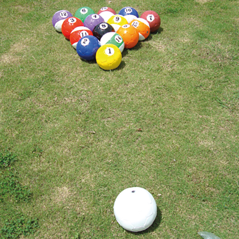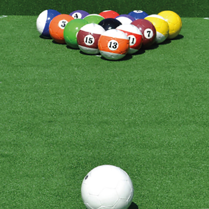Wie bei einem Billardtisch dienen als Banden für Fussball Billard im Innenbereich evtl. vorhandene Turnbänke, im Aussenbereich Bierbänke o.ä. Je nach gewünschtem Schwierigkeitsgrad können die „Löcher“ grösser oder kleiner gestaltet werden. Auch die Spielfeldgrösse kann dabei je nach Können variieren. Mit Ballgefühl, Zielgenauigkeit und Strategie gilt es nun die „Kugeln“ beim „Poolball“ in den Aussparungen zu „versenken“. Die Bälle in hochwertiger Trainingsfussball-Qualität werden handgenäht und aus hochglanzbeschichtetem Synthetikleder hergestellt. Der Luftdruck der Bälle kann über eine Ballpumpe mit Nadelventil reguliert werden.