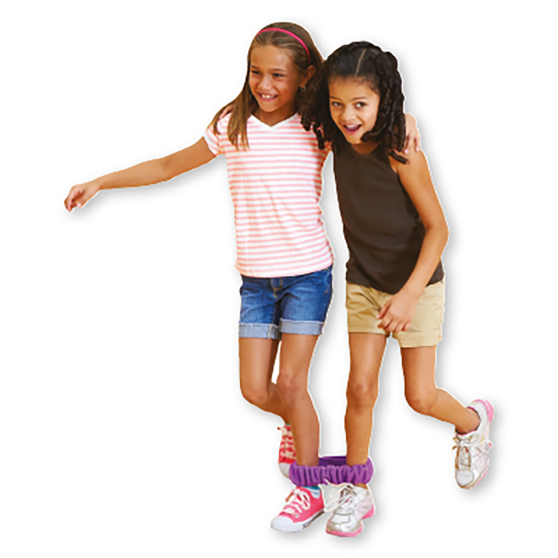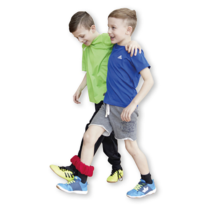 Die elastischen und angenehm zu tragenden Klettbänder lassen sich für viele Team- und Kooperationsspiele nutzen. Einfach einen Fuss des Partners mit dem eigenen oder nur die eigenen Füsse verbinden und dann um die Wette laufen oder hüpfen. Die Partner müssen bei den Übungen lernen zu kommunizieren und zu kooperieren.