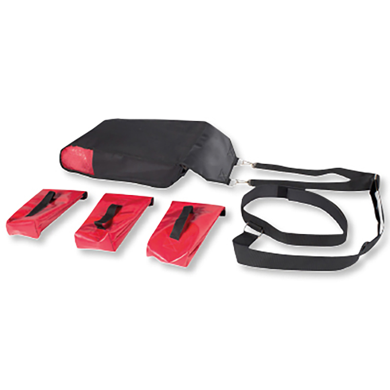 Gewichtsschlitten zur Verbesserung von Schnelligkeit und Ausdauer. Zudem kräftigt das Laufen bzw. Sprinten mit zusätzlichem Gewicht gezielt die unteren Extremitäten. Der Sprintschlitten ist ein unverzichtbares Trainingsgerät für nahezu alle Sportarten, wo Sprintfähigkeit und Kraftausdauer gefragt sind. Der abriebfeste Speedsac kann mit 3 x 5 kg-Gewichten variabel bestückt werden. So kann der Widerstand dem Fitnesslevel, Alter oder Trainingsziel des Trainierenden optimal angepasst werden. Der Bauch- bzw. Hüftgurt für den Schlitten ist in der Länge verstellbar.