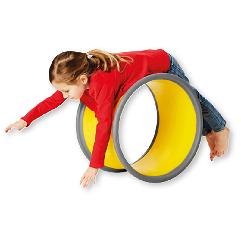 Das Bewegungsrad ist ein ein Spielgerät, das in seiner Funktion sowohl dyamisch-agil als auch statisch-stabil sein kann. Die Trommelform spricht Kinder an und animiert sie, das Rad zum rollen zu bringen, durchzukrabbeln, darauf zu liegen oder hinein zu springen. Mit mehreren Rädern können Sie ausserdem tolle Bewegungslandschaften kreieren.