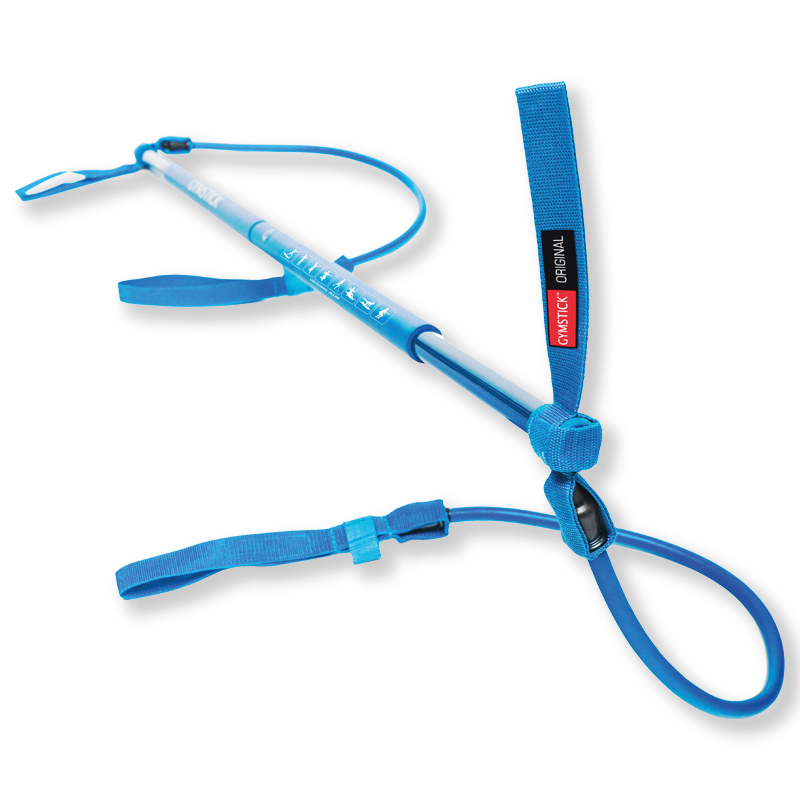 Der GYMSTICK ist ein einfaches, effektives und vielseitiges Trainingsgerät für den Einsatz in der Physiotherapie, im Fitnessstudio und im Verein, sowie für das selbständige, individuelle Training zu Hause. Er lässt sich für alle Übungen einsetzen, die mit freien Hanteln durchführbar sind und verbessert dabei Herz- und Kreislauffunktionen, Kraft, Ausdauer, Beweglichkeit, Gleichgewicht und die Fettverbrennung. Die 75 cm langen Latextubes werden an beiden Enden des Stabes (130 cm) angebracht und die beiden freien Schlingen werden unter den Füssen befestigt. Der Widerstand kann nun einfach und schnell reguliert werden, indem man die Tubes um den Stick wickelt. Lieferung inkl. Aufbewahrungstasche und Übungsanleitung.