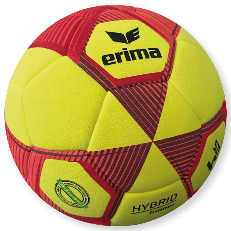 Klassischer Indoor Fussball mit der ERIMA Hybrid Technologie, die die Vorteile eines geklebten und die eines genähten Balls vereint. ABS Ventil / Butyl-Blase , Extrem abriebfestes Microfaser PU mit Filzbeschichtung.