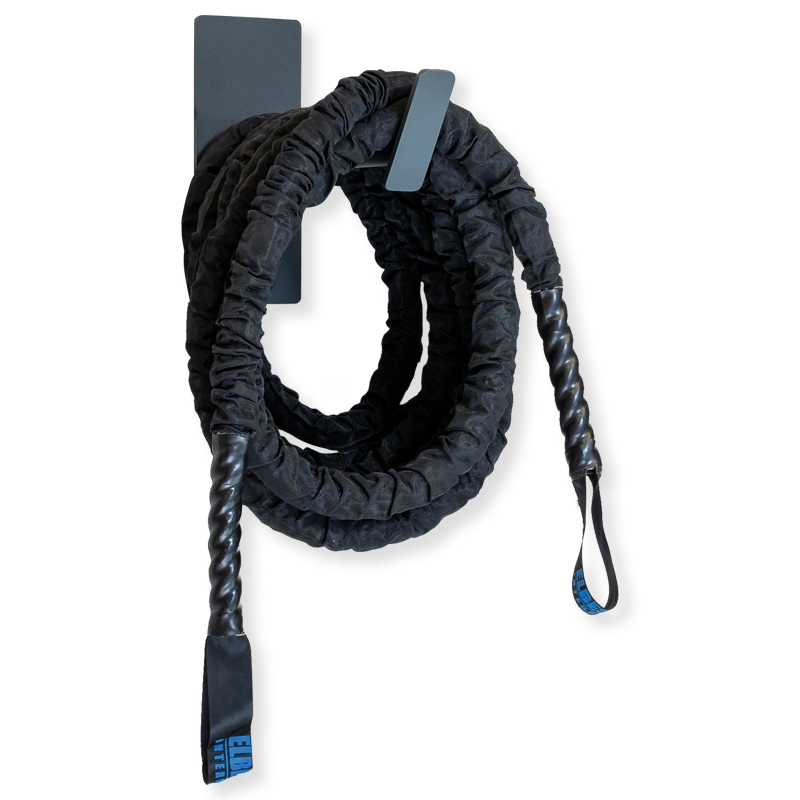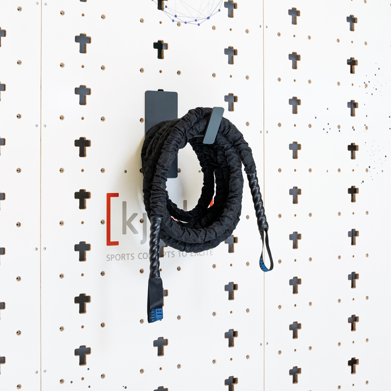 Aufbewahrungsmöglichkeit für Battle Rope, Seile, Bänder und weiteres Equipment. Dient auch als horizontale Ablage für Langhanteltrainer.