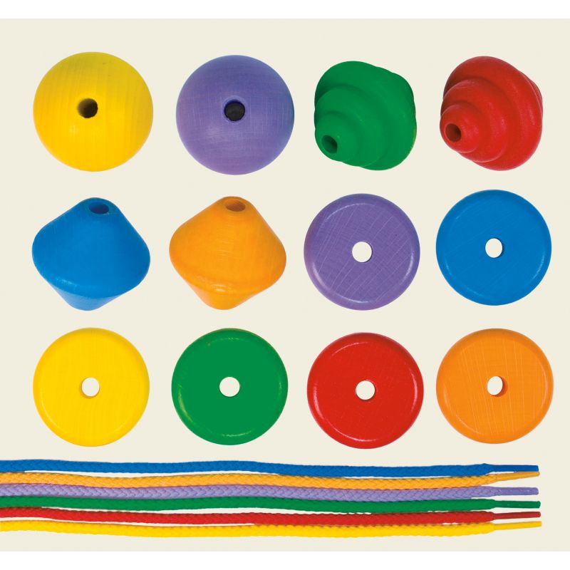 - Inhalt: 12 Holzperlen, 6 Schnüre