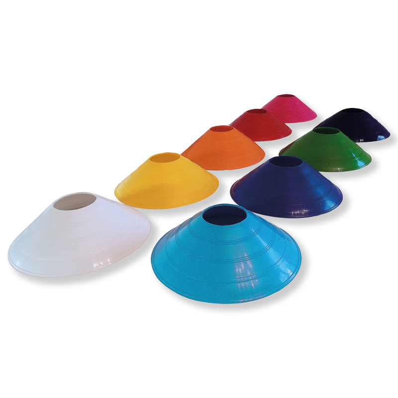 Die hochwertigen, stabilen Markierscheiben sind in vielen verschiedenen Farben verfügbar und sind somit die perfekte Trainingshilfe für koordinative oder kognitive Übungen. Ausserdem dienen sie dem Abstecken von Feldern, für Dribbelübungen und als Minitor.