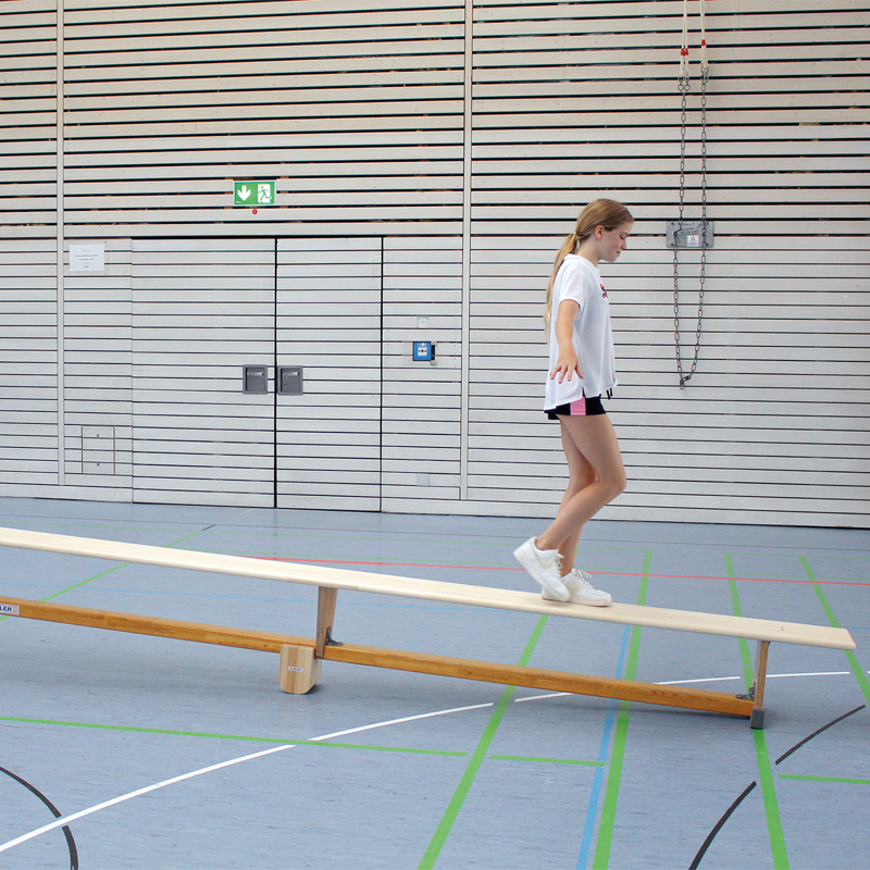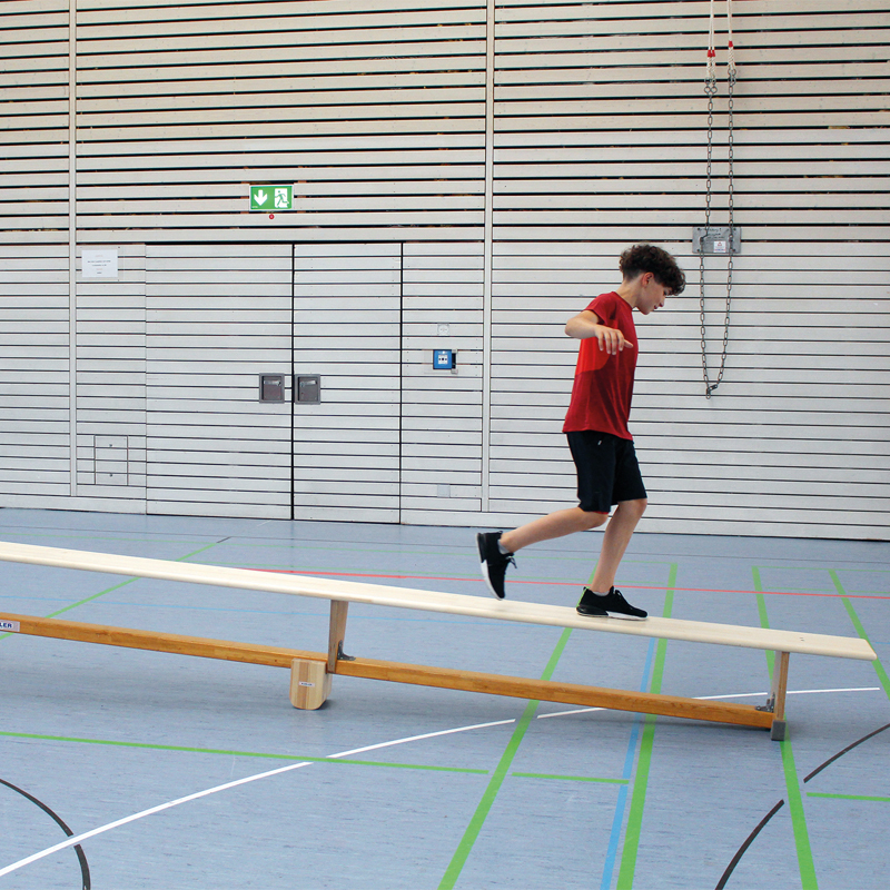 Kinder können einfach hin und her wippen oder mit etwas mehr Übung über die wippende Langbank laufen. In beiden Fällen erhält man Abwechslung im Kinderturnen oder im Kinderturnen. Dank der gummierten Ablagefläche verhindert es ein Rutschen der Turnbank.