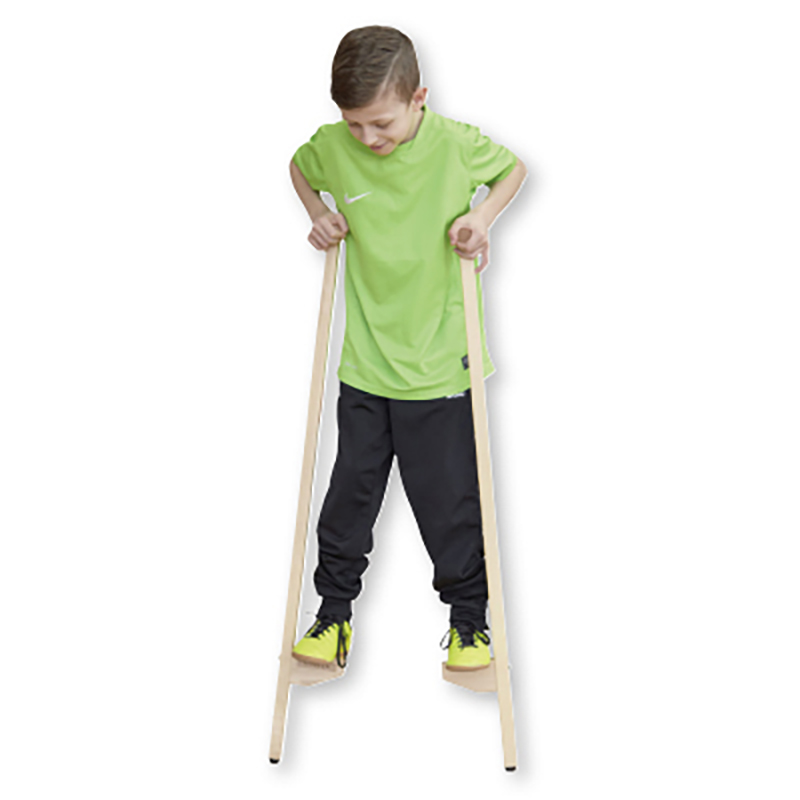 Das Gehen auf den Holzstelzen fördert Balance und Geschicklichkeit bei Kindern und Erwachsenen. Durch die höhenverstellbaren, einschraubbaren Stelzenbacken lässt sich der Schwierigkeitsgrad beliebig verändern. Die Holzstelzen sind aus massivem Buchenholz bis max. 80 kg belastbar. Die ergonomisch abgerundeten Stangen lassen sich sehr gut greifen. Nichtfärbende Gummipuffer sorgen für die notwendige Sicherheit und ermöglichen den Stelzenlauf sowohl in der Turnhalle als auch auf dem Pausenhof. Stelzen eignen sich für viele Geschicklichkeitsspiele zum Durchlaufen spezieller Parcours oder beim Staffellauf gegeneinander.